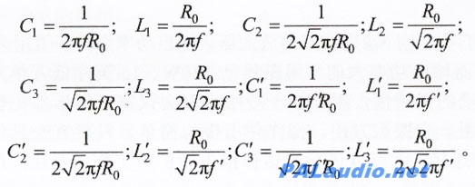 式中,f为低频扬声器与中频(或高频)扬声器的分频频率;f为中频扬声器与高频扬声器的分频频率;Ro为扬声器音圈阻抗。