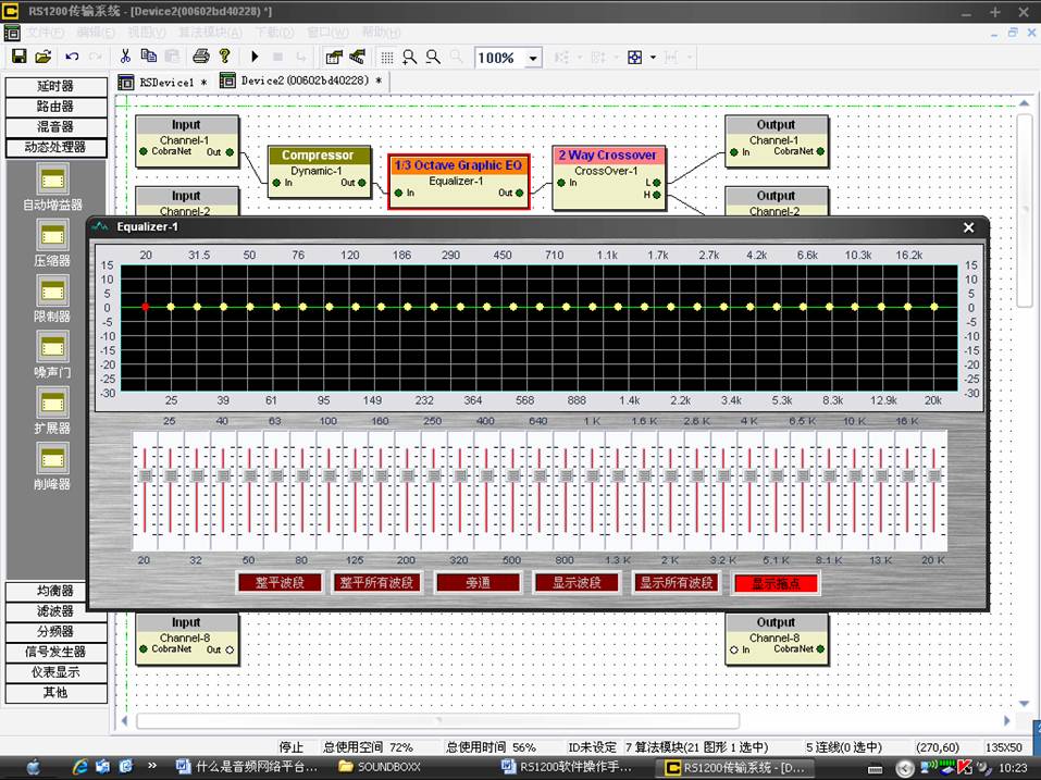 音频网络平台软件另一个优点就是很直观的再现了设备。我们通过双击设备的图标来打开设备对其进行调整,例如,我们双击31段均衡器。