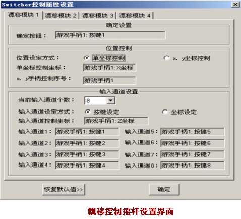 可在飘移控制杆上设定X、Y坐标及输入通道的控制方式