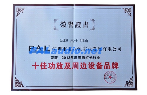 宝业恒旗下 PAL 品牌荣获“功放及周边设备” 十佳品牌;