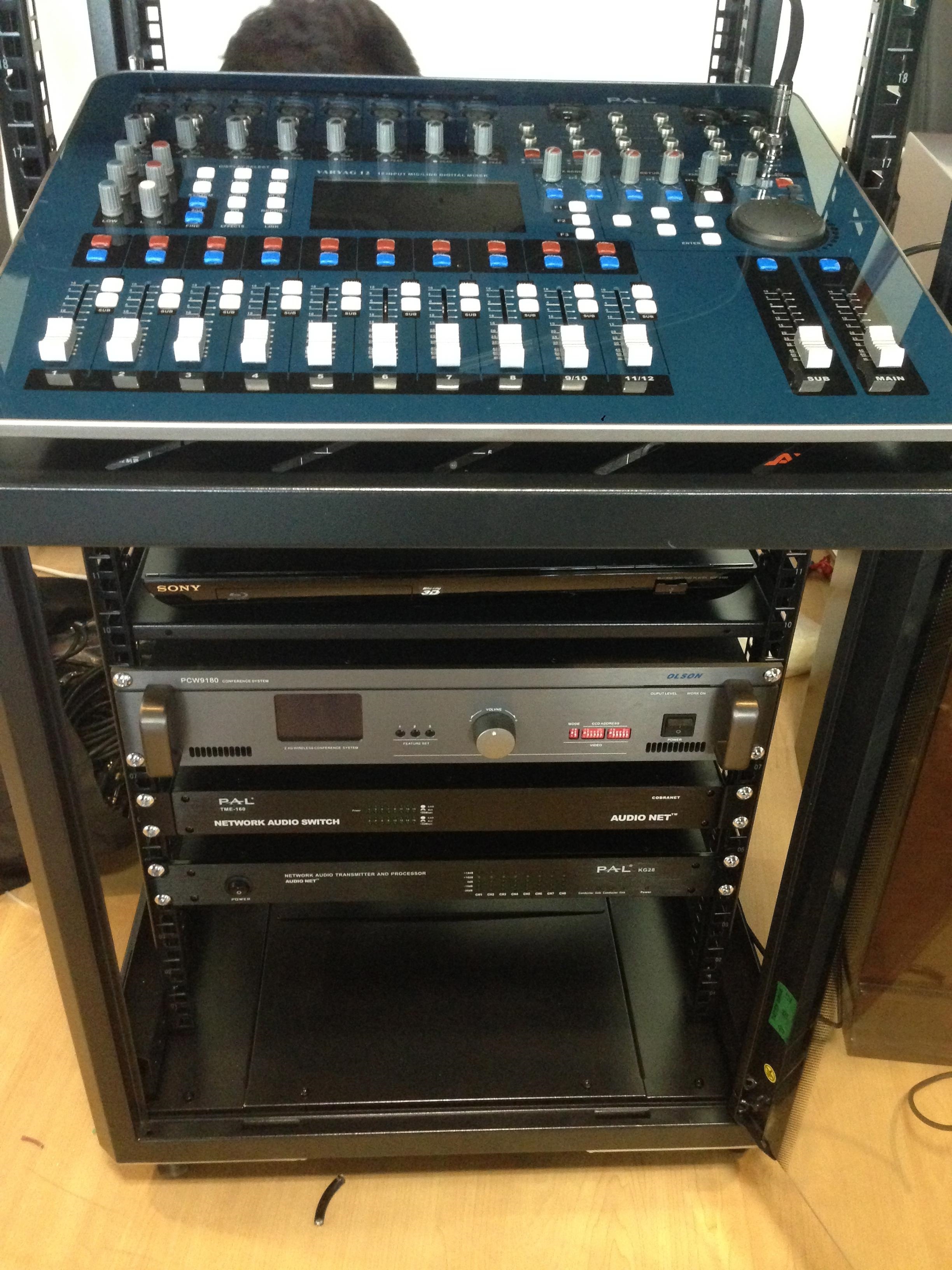 深圳市医管中心多功能会议室定位于中小型会议,装修风格简单大方,PAL音箱的超薄外型和工艺与之完美搭配。扩声系统用到PAL VARYAG系列数字调音台,成为此多功能厅的一大亮点。另外配备PAL网络有源音箱EV10A、网络音频传输处理器KG28以及网络音频接口TME-160等,整套网络数字扩声系统,高音甜美通透,中音纯净温润、细节丰富、人声表现可圈可点,低音柔和饱满。