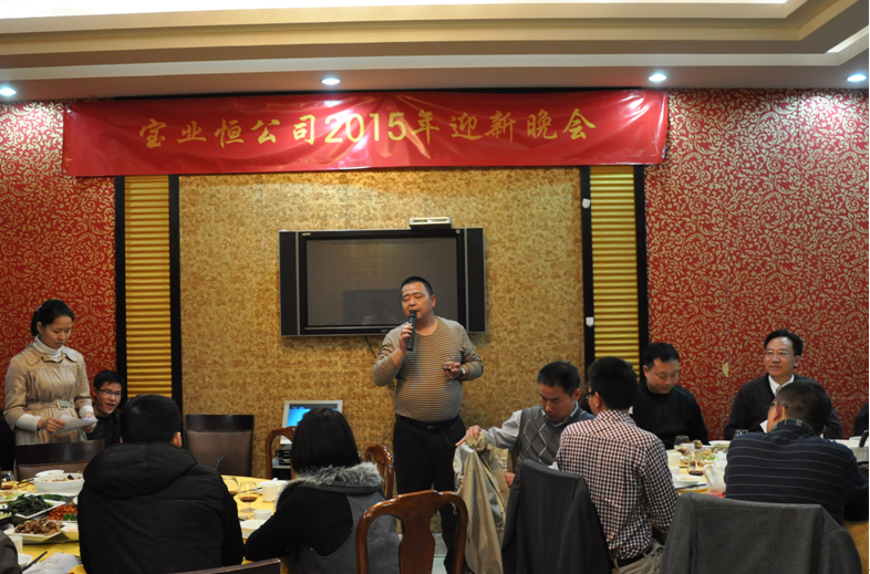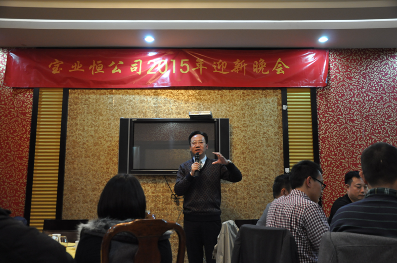 晚会伊始,宝业恒公司董事长周宝宁先生发表了热情洋溢的迎新致辞,他首先对在2014年严峻的市场形势下,公司销售实现了逆势增长表示高度肯定,并感谢全体员工的辛勤努力。