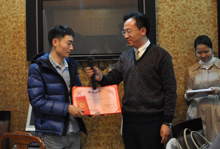 王春宇总经理为“开拓之星”韩欧阳颁奖