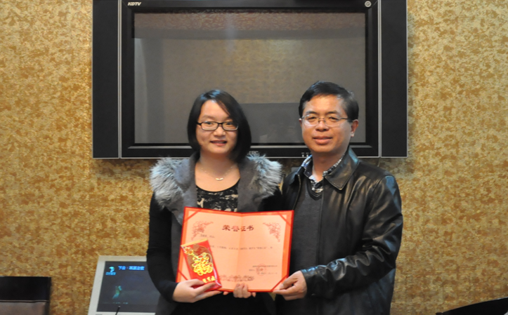 厂长胡运明先生与“职能之星“张盼盼合影