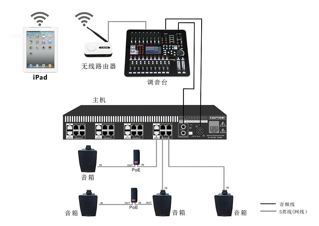 据了解,PAL POE系列数字扩声系统的主机机箱采用标准19寸宽度及1.5U高度设计,电源输入支持全球电源电压AC100-240V 50/60Hz,4组独立的电源供电,保证每个分区电源供应功率增强,且互相隔离安全可靠。E5音箱内置专用的解码器和D类功放,配置高保真的5寸低音和1/2寸高音单元,声音还原清晰度高失真小。音箱箱体小巧,吊挂便捷,音质清晰、精准,具有传输距离远、无干扰及低损耗等特点。适用于会议室、学校、展厅、礼堂等场地。