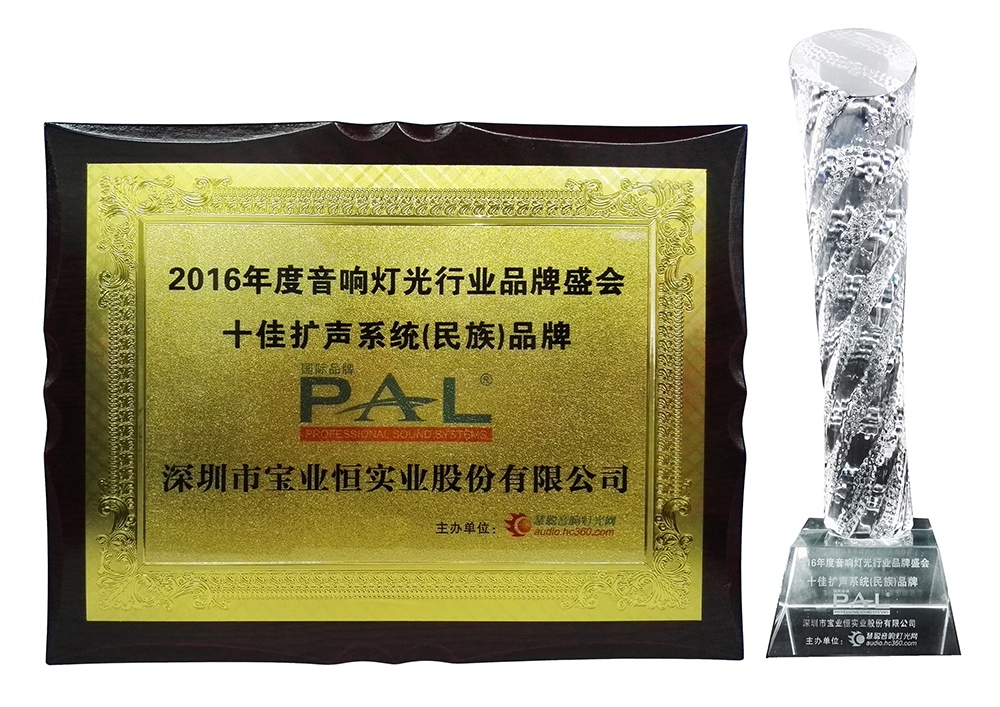 自2006年以来,PAL已经连续十年相继斩获 “中国十大最具竞争力品牌”、 “中国十大民族品牌”、“十佳专业扩声系统品牌”等殊荣。这是行业对PAL品牌的肯定和激励,也是对我们的鞭策和监督。