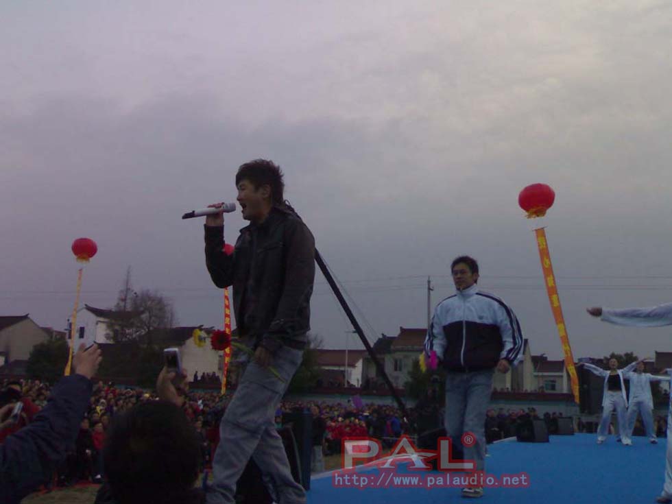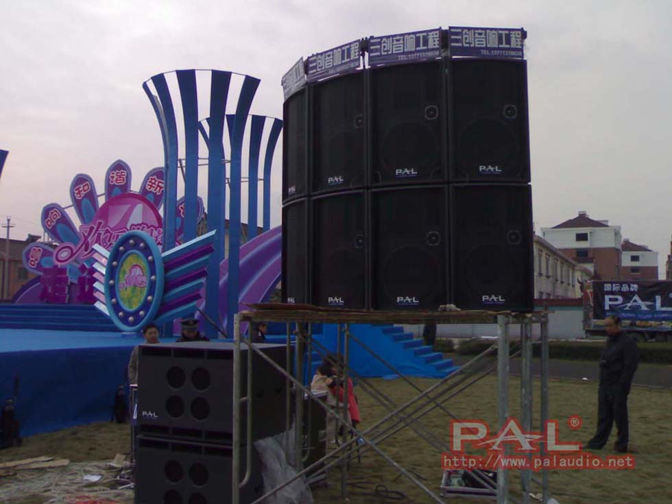 由于众多无锡歌迷的热情,此次孙楠无锡歌友会选择了户外广场做为与歌迷见面地点,有别于以往在室内举行。音响设备采用了16只PAL ET1574演艺系列音箱,舞台两侧一边各8只组成阵列,阵列音箱下边分别摆放4只ET2801低音以组成主扩声音箱组,辅助扩声音箱采用4只TV720全音域演艺音箱。PAL ET阵列音箱将孙楠富有激情的演唱风格和具有穿透力的歌喉发挥到极至!致使歌友会在歌迷满意和轻松快乐气氛中的画上了完美的句号。