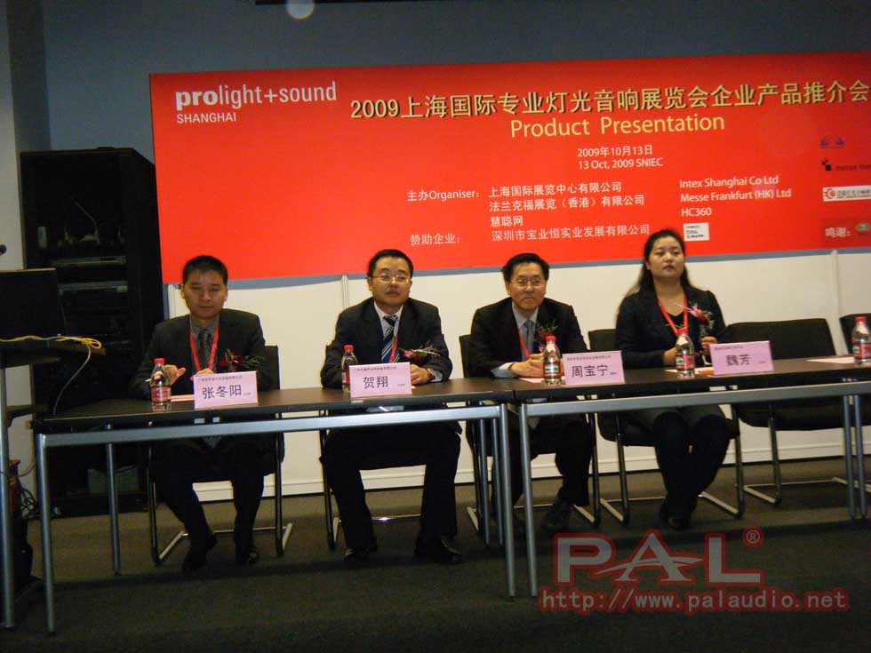 2009年10月13日,上海国际灯光音响展会企业产品推介会在在上海新国际博览中心隆重举行,300多家企业参加了本次大会。