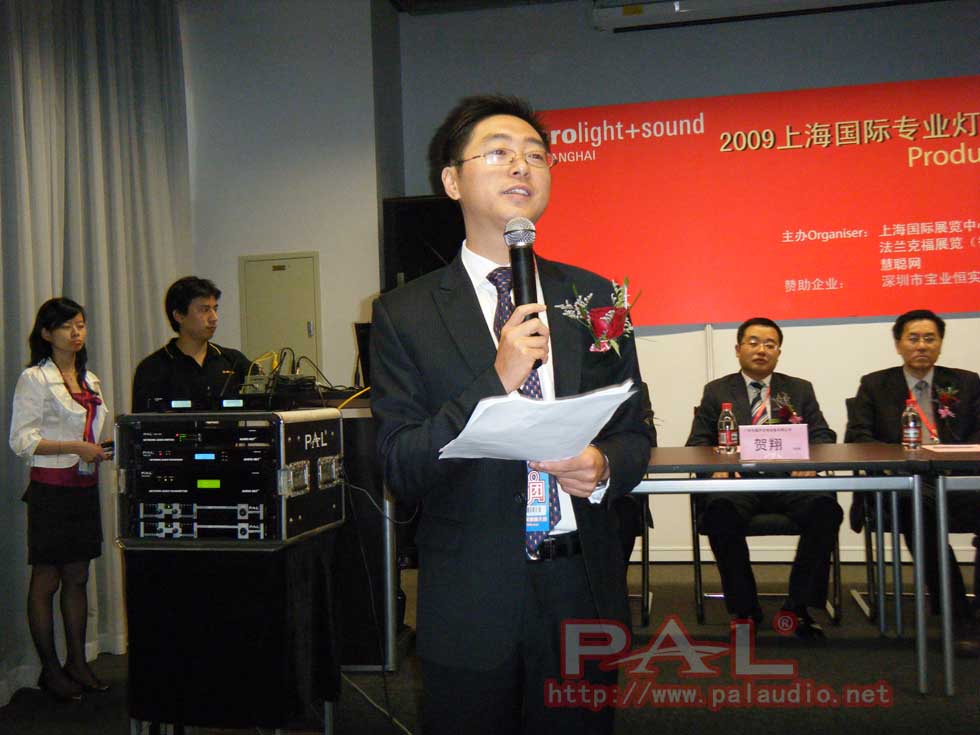 此次大会所使用的音响扩声全部由我司提供赞助。设备使用了最新的同轴钕铁硼音箱,数字功放,网络音频平台以及无线麦克风等设备。这些新设备,不仅是本次推介会上我司推荐的新产品,同时也是这次上海展会上所展览的新品之一。