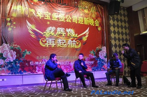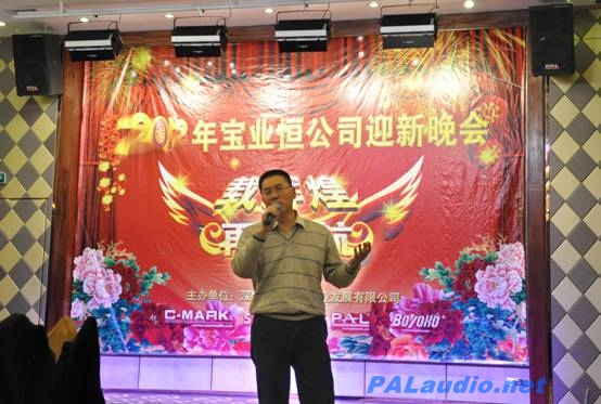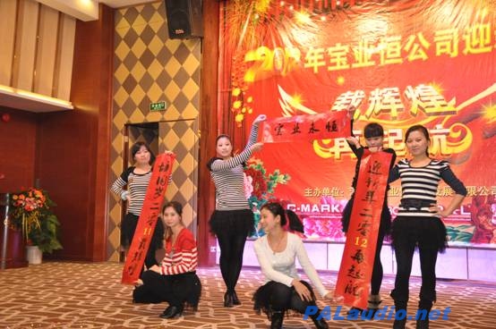 “辞旧岁,2011载辉煌;迎新年,2012再起航”---宝业恒(总部)2012年迎新晚会于12月31日晚在全国人大深圳培训中心宴会厅隆重拉开大幕,该酒店所有扩声系统均采用宝业恒PAL音响设备,本次晚会上,宝业恒人用自己的音响上演了一场视听盛宴。